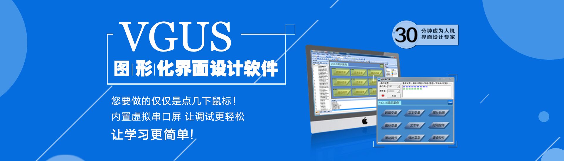 秉持讓人機交互設計更簡單的理念,成功研發了工業組態軟件VGUS(Viewtech Graphical User Software)。該軟件提供了一種圖形化的人機交互功能設計方法,打破了傳統的描點、畫線的界面設計模式,降低了儀器設備的人機交互系統設計難度,解決了人機交互相關工作的重復性設計問題,能夠讓設計人員把更多的精力集中于產品關鍵技術研發上,專心于專業產品的開發,提高了儀器設備的開發效率。